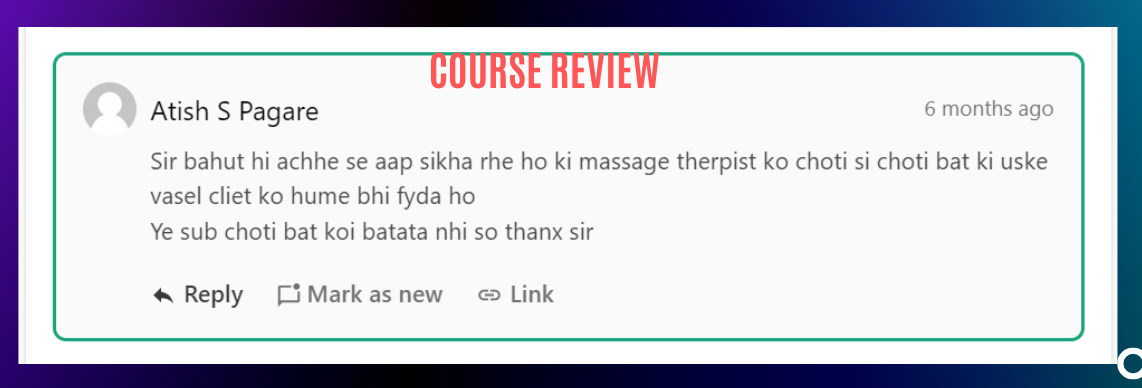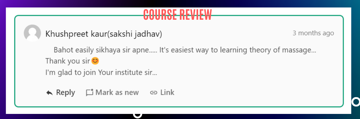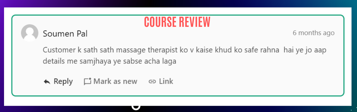 2. आप भली-भांति समझ जाएंगे कि मसाज क्षेत्र में करियर, सम्मान और आय की संभावनाएं क्या हैं। You Will Exactly Understand What Are The Possible Career, Respect & Income Scope in Massage Field.