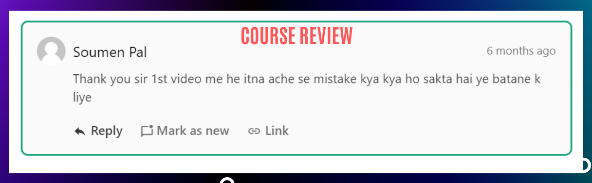 अगर मुझे यह कोर्स पसंद नहीं आया तो क्या होगा?This 2 Hours Course has Been Presented to 20000 Plus Students, Each One Of them Has Liked It.